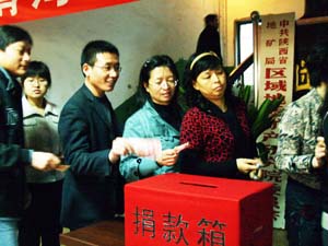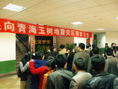 4月19日下午, 區(qū)研院黨委及工會(huì)根據(jù)上級精神,及時(shí)安排部署向玉樹地震災(zāi)區(qū)捐助活動(dòng)。各分會(huì)認(rèn)真組織動(dòng)員,向大家詳細(xì)介紹災(zāi)情。4月20日上午10:00,在辦公樓一樓大廳舉辦了以 “向青海玉樹地震災(zāi)區(qū)獻(xiàn)愛心”為主題的大型募捐活動(dòng),院領(lǐng)導(dǎo)帶頭,廣大干部職工紛紛伸出友愛之手,慷慨解囊,以實(shí)際行動(dòng)支援地震災(zāi)區(qū)人民群眾渡過難關(guān),共有206人,捐款 18095元?,F(xiàn)場涌動(dòng)著一片融融真情。人群中,既有在職的干部職工,也有離退休的老同志、還有部分家屬。有的院領(lǐng)導(dǎo)、干部職工因公出差等原因不能前往現(xiàn)場,特地委托同事或家人代為捐助。區(qū)研院人為災(zāi)區(qū)苦難中的血肉同胞們奉獻(xiàn)上了一片愛心,拋灑出了一片真情。