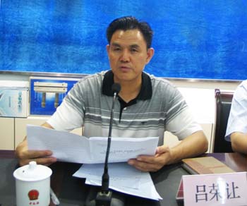 左圖為院長張孝文在會議上重點發(fā)言,右圖為書記呂榮讓傳達(dá)李局長報告