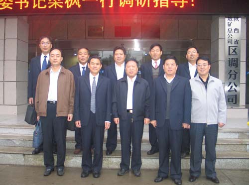 2012年10月16日上午,陜西地礦總公司董事長、黨委書記梁楓同志在發(fā)展規(guī)劃部主任白志宜、生產(chǎn)經(jīng)營部主任蒙小記的陪同下,冒雨來到我公司調(diào)研檢查指導(dǎo)工作。
