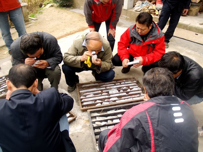 10月11日,時值深秋,漢中寧強(qiáng)冷家溝,秋雨淅瀝,寒風(fēng)瑟瑟。我院院長邢憲龍、總工程師趙長纓會同物化探隊(duì)隊(duì)長王新坪、礦業(yè)開發(fā)工貿(mào)公司總經(jīng)理王興國、漢中地質(zhì)大隊(duì)副總工程師陳少鋒風(fēng)塵仆仆趕到項(xiàng)目。這已經(jīng)是邢憲龍?jiān)洪L今年以來第四次來項(xiàng)目。由于受到多方關(guān)注,區(qū)研院人深感肩頭擔(dān)子不輕,責(zé)任重大,決心奮力一搏,交出滿意答卷。為了早日解決錯綜復(fù)雜的地質(zhì)難題,使項(xiàng)目擺脫困局,破繭而出,化蝶高飛,區(qū)研院領(lǐng)導(dǎo)和同志們一直在苦思對策。汽車在崎嶇的山路上顛簸了幾個小時,一行人于早上10點(diǎn)趕到位于山區(qū)的項(xiàng)目駐地。大家不顧舟車勞頓,立即投入工作。邢憲龍?jiān)洪L一行在駐地詳細(xì)聽取了項(xiàng)目負(fù)責(zé)楊春輝的工作量完成、工作進(jìn)展情況匯報,同時認(rèn)真查看了地質(zhì)圖、鉆探施工圖等。而后漢中地質(zhì)大隊(duì)陳少鋒副總工程師帶著專家們風(fēng)風(fēng)火火趕來。大家顧不上握手寒暄,邢院長便招呼他:“來,先看看地形圖……”。初步了解工區(qū)地質(zhì)情況后,一行人一起上山尋找解決方案,工區(qū)山高溝深,道路崎嶇,路面濕滑,荊棘密布。邢憲龍?jiān)洪L走在最前面,用手撥開層層荊棘,冒著嚴(yán)寒給專家們領(lǐng)路,“你們可是我們請來的良醫(yī),一定要會診好這個項(xiàng)目!”。大家一同查看了探槽,研究了礦體蝕變情況及構(gòu)造發(fā)育情況。每發(fā)現(xiàn)一個重要線索,專家就停下腳步,用地質(zhì)錘和放大鏡仔細(xì)研究。臨近中午,風(fēng)突然大起來,天空飄起雨絲,氣溫下降到10攝氏度以下,人們說話時口中都冒著白氣,大家相互攙扶防止滑倒。我院總工辦趙平甲主任穿著單衣在寒風(fēng)中瑟瑟發(fā)抖,同志們開玩笑說冷家溝真是冷得名不虛傳。在存放巖芯的老鄉(xiāng)家的院子中,大家觀看了巖芯標(biāo)本,展開了對比分析研究。回到駐地后,召開了研討會。專家指出,冷家溝所在地區(qū)是陜西重要的成礦帶,有強(qiáng)烈的勘查標(biāo)志,是多年來成礦非常好的地區(qū)。專家建議,要進(jìn)一步推進(jìn)找礦工作,研究控礦條件,尋找成礦規(guī)律,擴(kuò)大已有成果。在今后的工作中,應(yīng)重點(diǎn)解剖一塊已知區(qū)域,增加化探及采樣工作,及時開展新發(fā)現(xiàn)異常的查證,適當(dāng)重砂取樣,重視研究礦體走向及連續(xù)性問題。邢憲龍?jiān)洪L對專家們的指導(dǎo)表示感謝,鼓勵地質(zhì)隊(duì)員們堅(jiān)定信心,攻堅(jiān)克難,奮勇拼搏,爭取早日取得找礦重大突破。