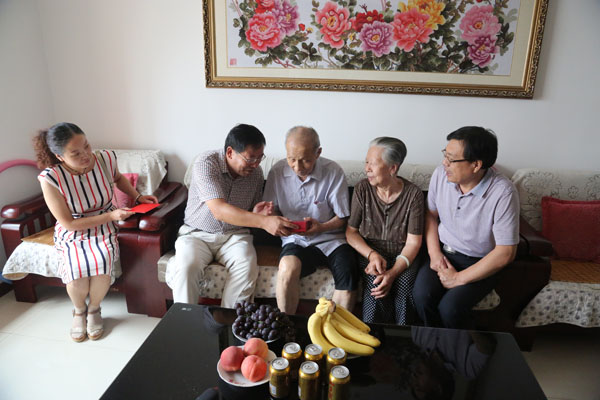 9月1日,在紀念抗日戰(zhàn)爭暨世界反法西斯戰(zhàn)爭勝利70周年即將來臨之際,總公司離退所主任李崇勇、區(qū)研院黨委書記宋化清、紀委書記張金環(huán)一同看望慰問了我院的抗戰(zhàn)老兵葛振杰,與他促膝長談,詳細詢問他的身體狀況和生活情況,認真傾聽老英雄講述了當年的英勇事跡,給他送去慰問金及榮譽勛章,并向他致以節(jié)日的問候、崇高的敬意,表示國家和人民不會忘記抗戰(zhàn)老兵,祝他健康長壽、晚年幸福。(白宏偉/文圖)