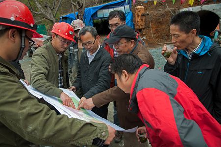 4月13日,陜西地礦總公司總工齊文、副總工黃沙及生產(chǎn)技術部李建軍等前往寧強、漢中等地檢查指導野外工作,我院院長邢憲龍、總工程師趙長纓、安委會辦公室主任郭兵等隨行。在我院冷家溝硐探施工現(xiàn)場,總公司領導認真聽取了項目匯報,仔細查看了硐探效果,對項目工作提出了指導意見。在為期3天的行程中,檢查組還對工貿(mào)公司、漢中地質大隊等單位野外項目進行了現(xiàn)場指導。