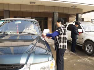 系上紅絲帶祈福平安順利 目 送