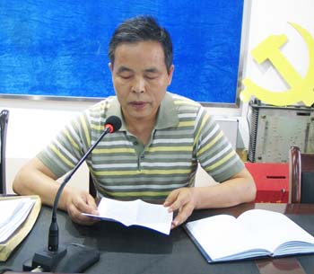 左圖為院長張孝文在會議上重點發(fā)言,右圖為書記呂榮讓傳達(dá)李局長報告